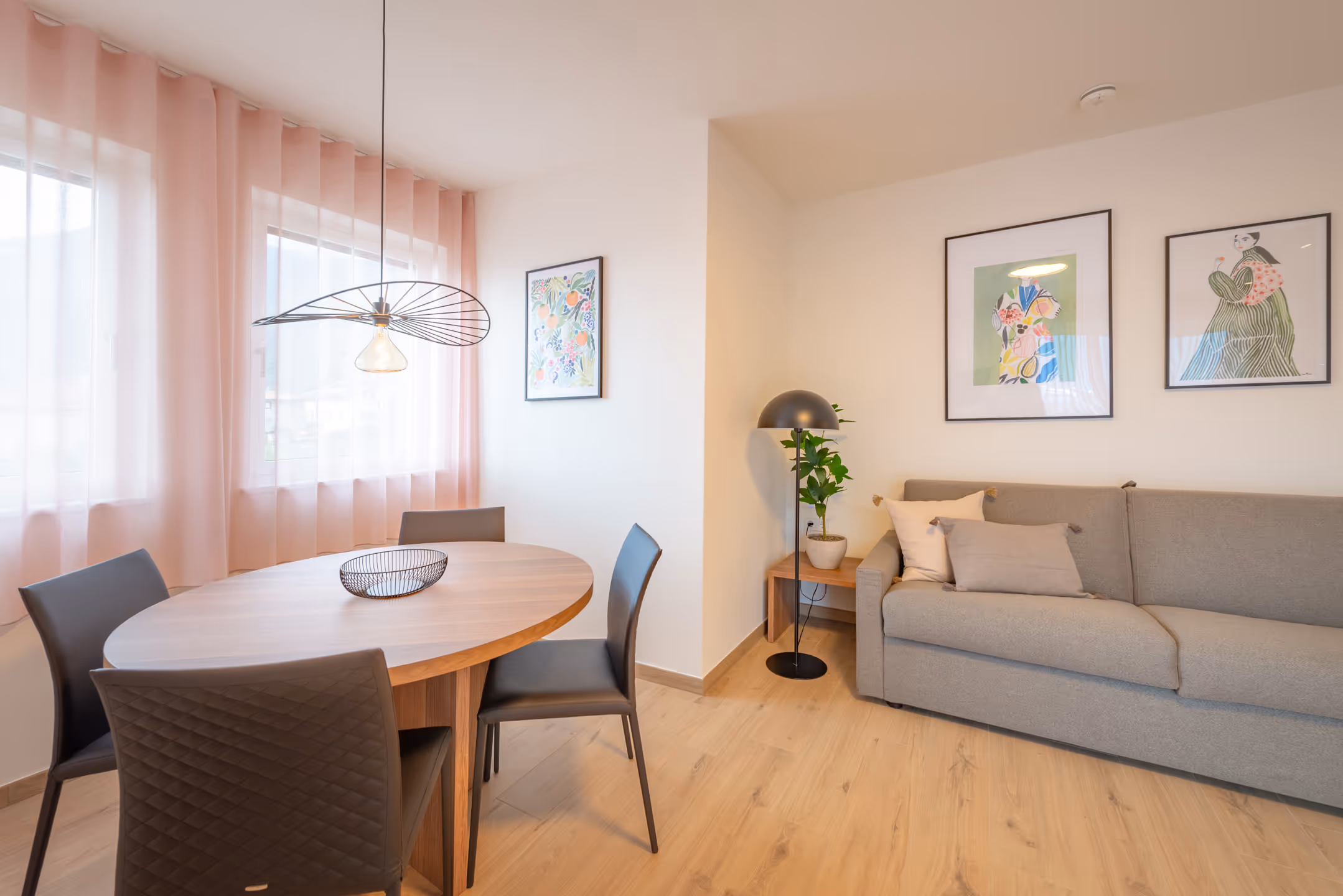 Apartment DRAI empfängt Sie mit einem großzügigen Raumgefühl.